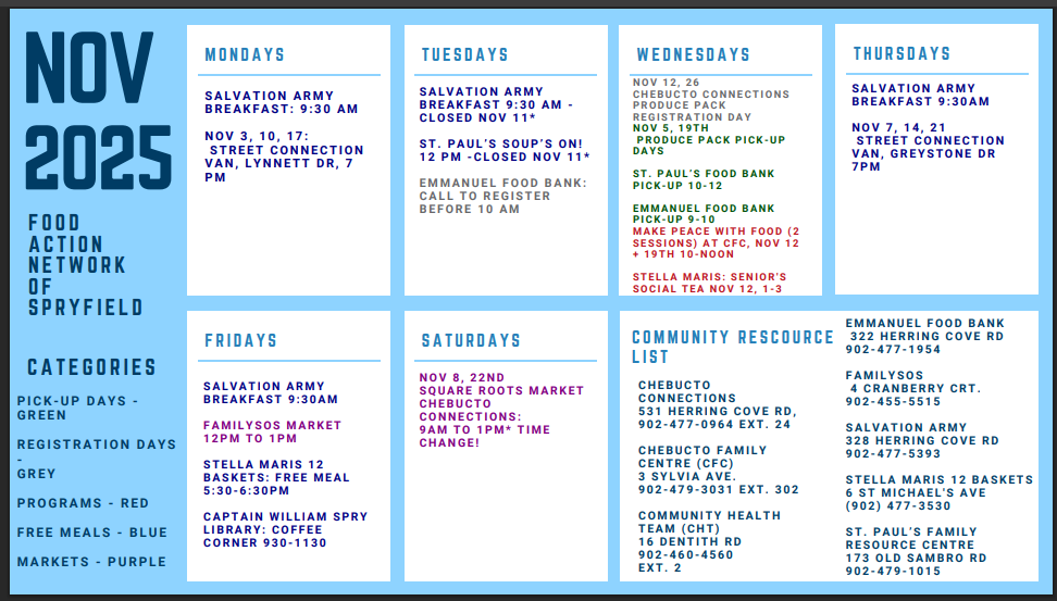 Please see attached Food Action Network Spryfield flyer for November